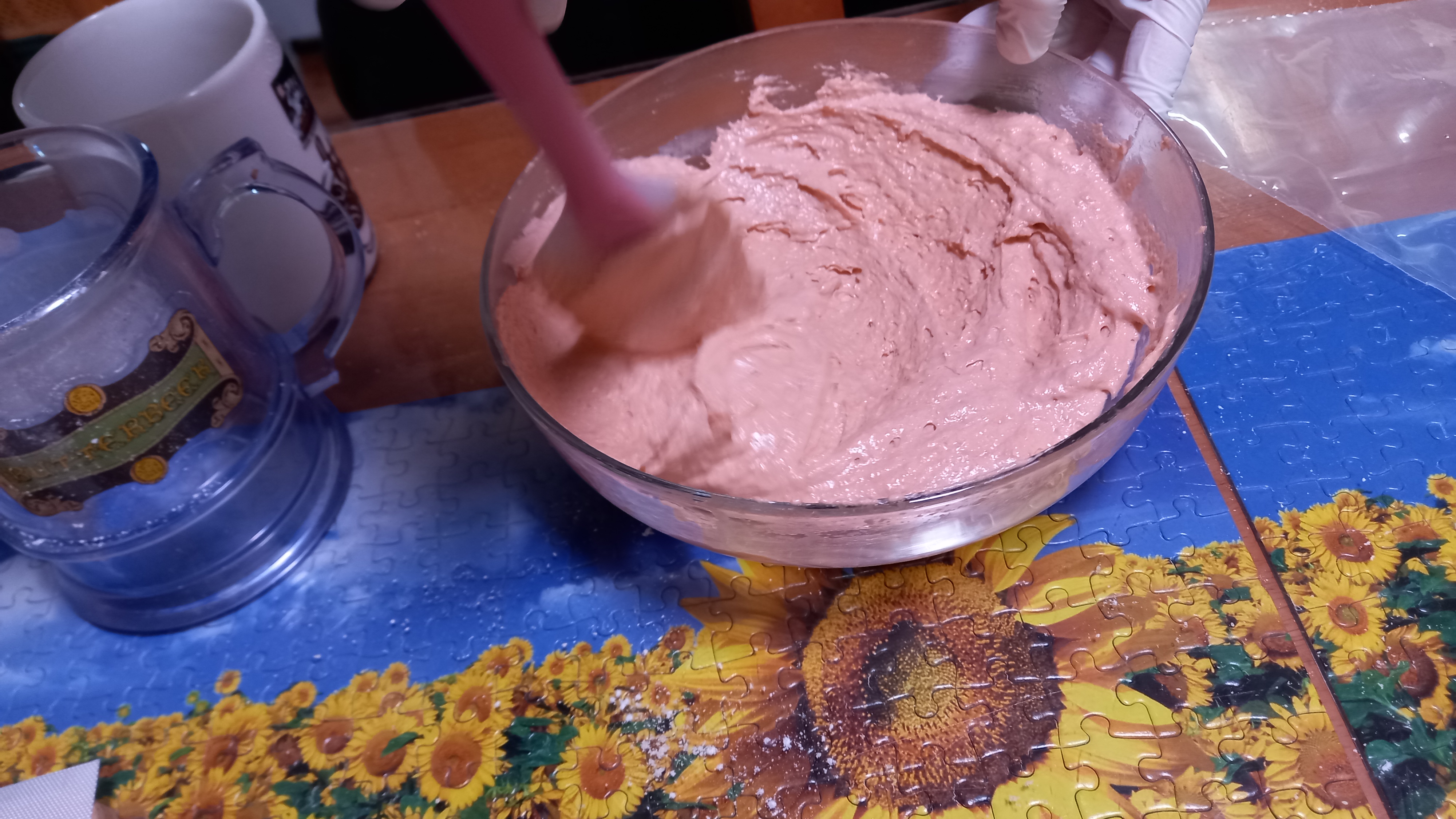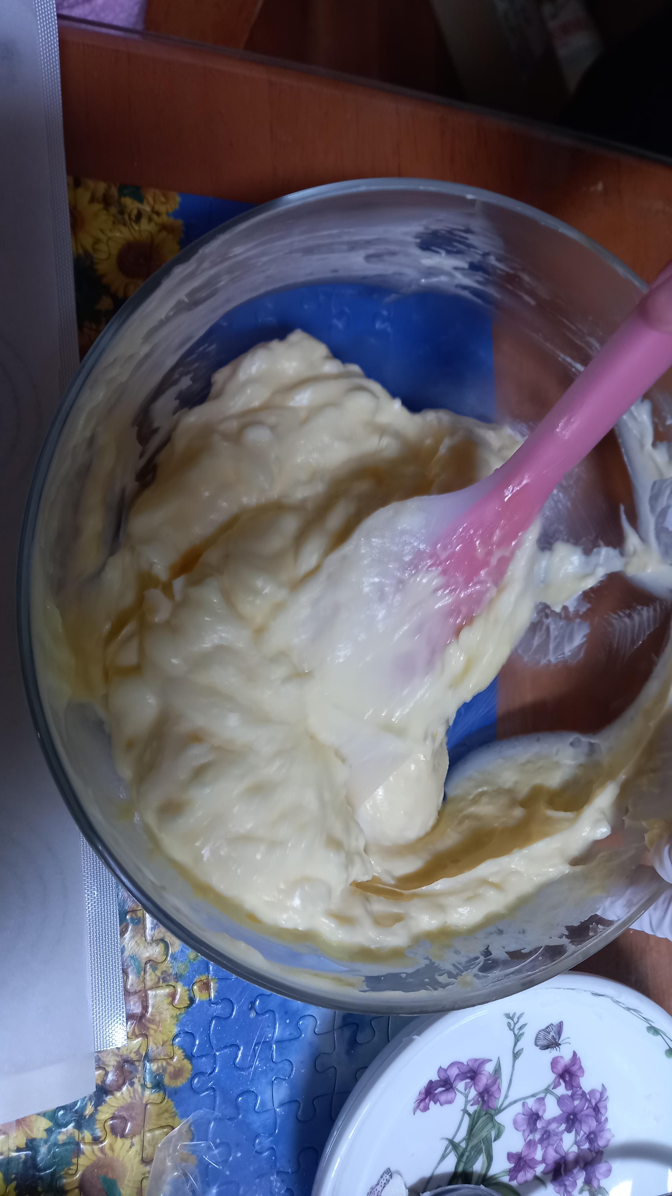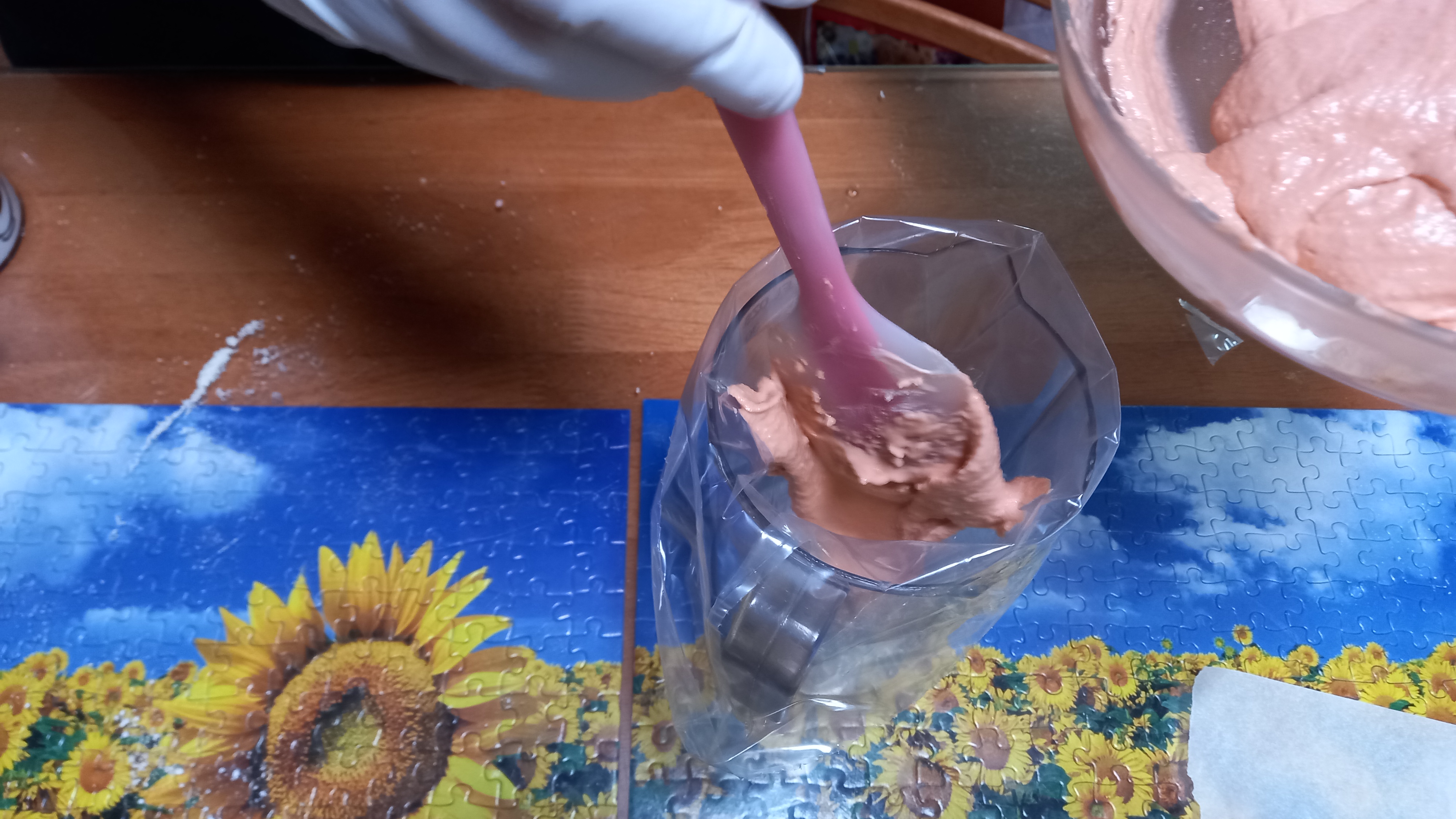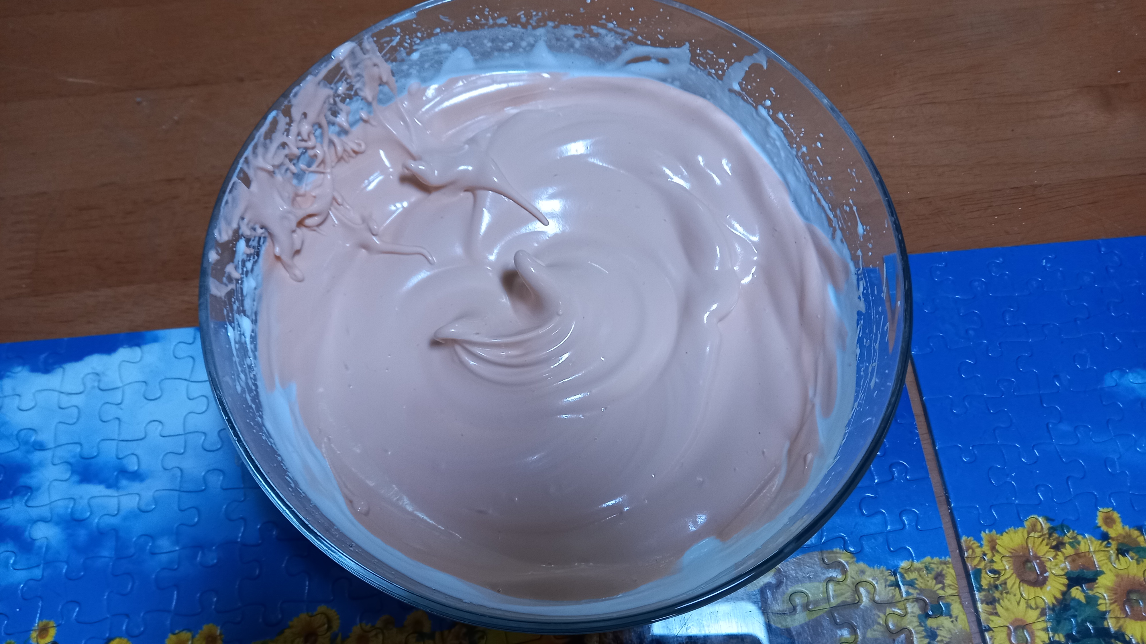 잘 저어준 후 짤주머니에 넣어 냉장고에 넣어 굳혀요.