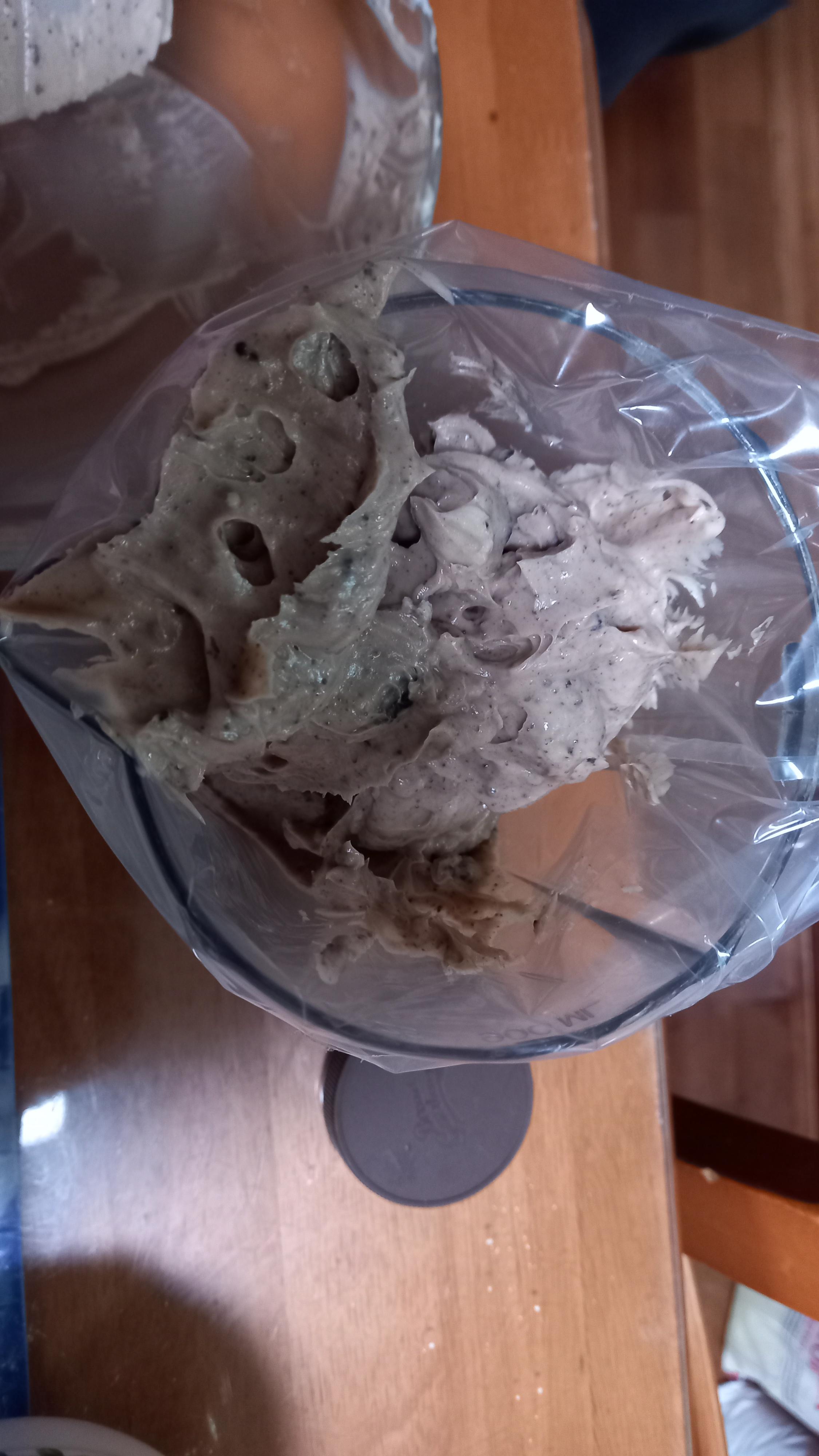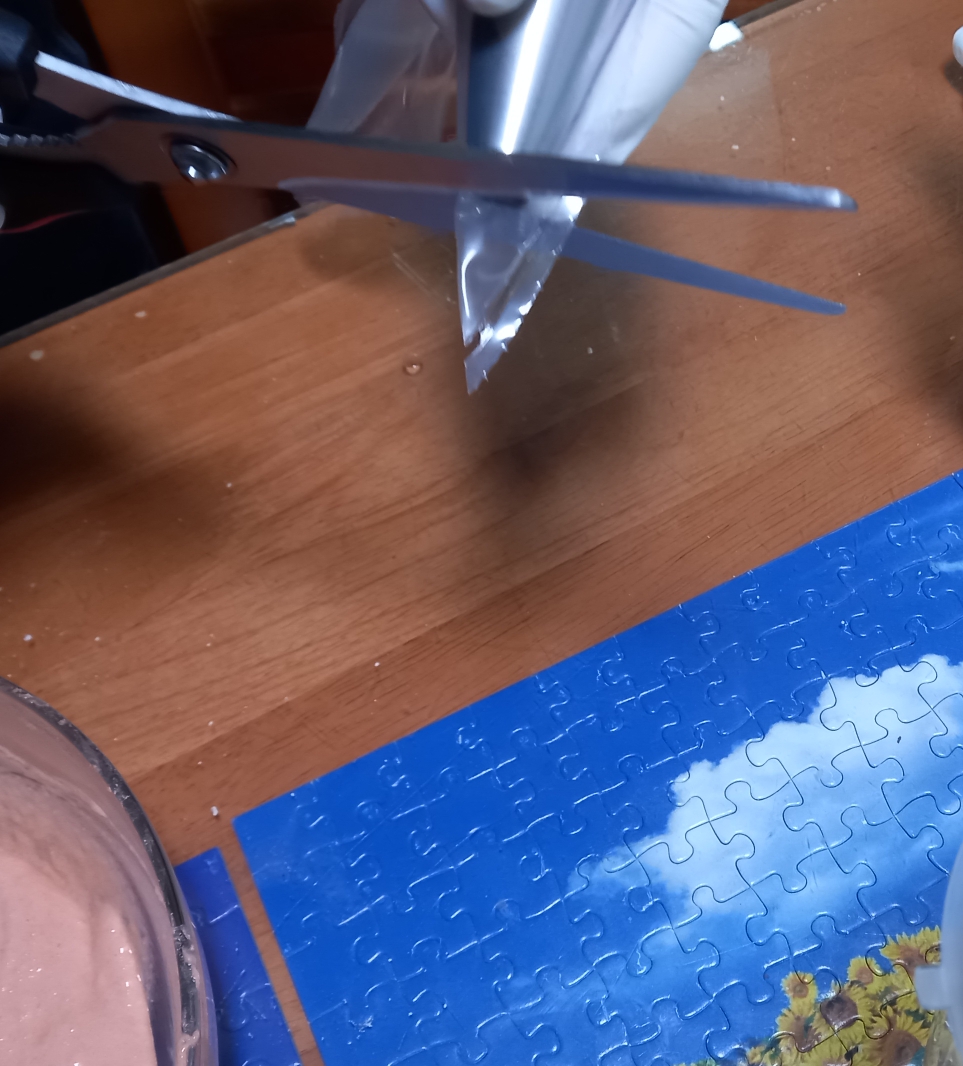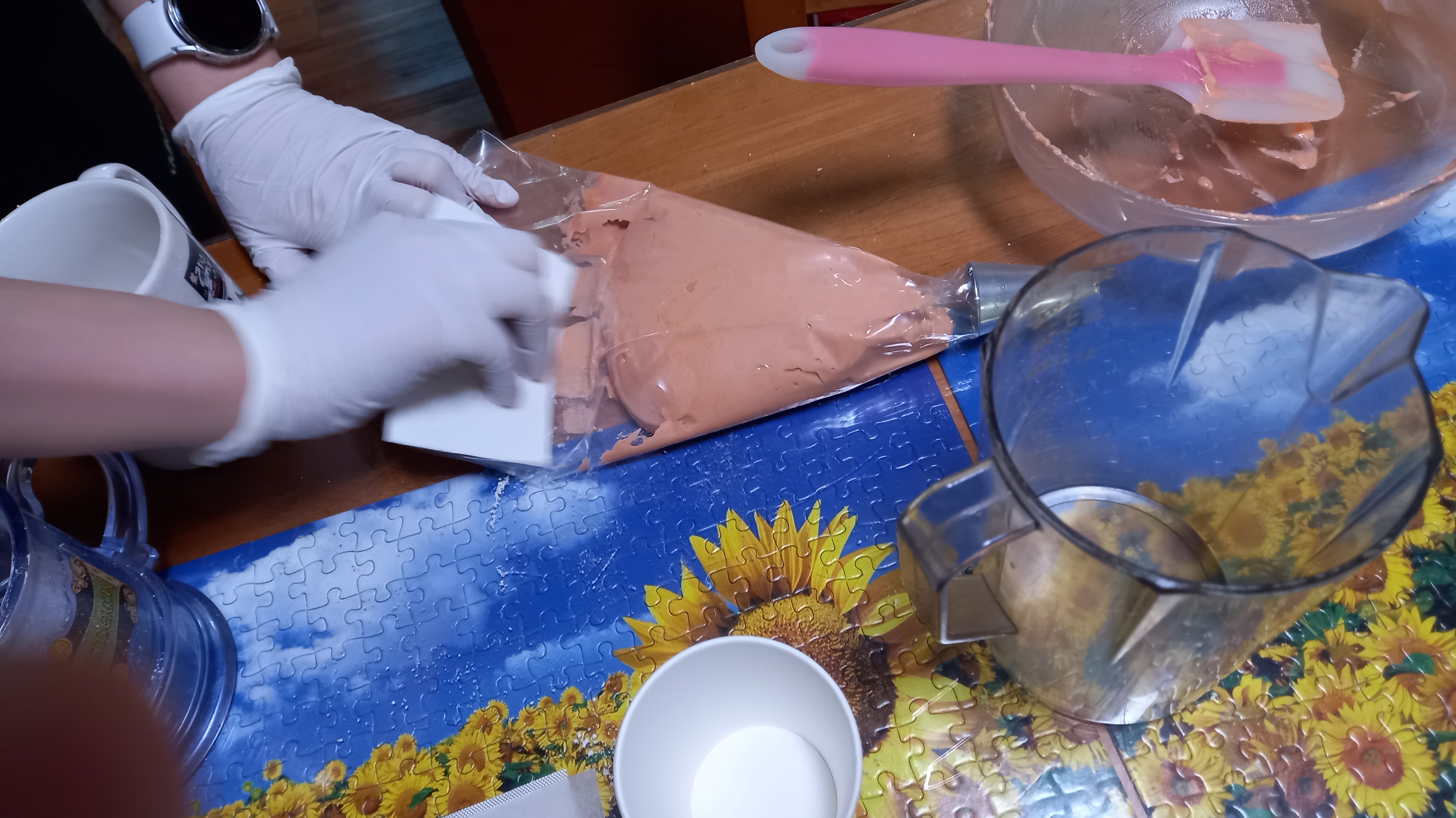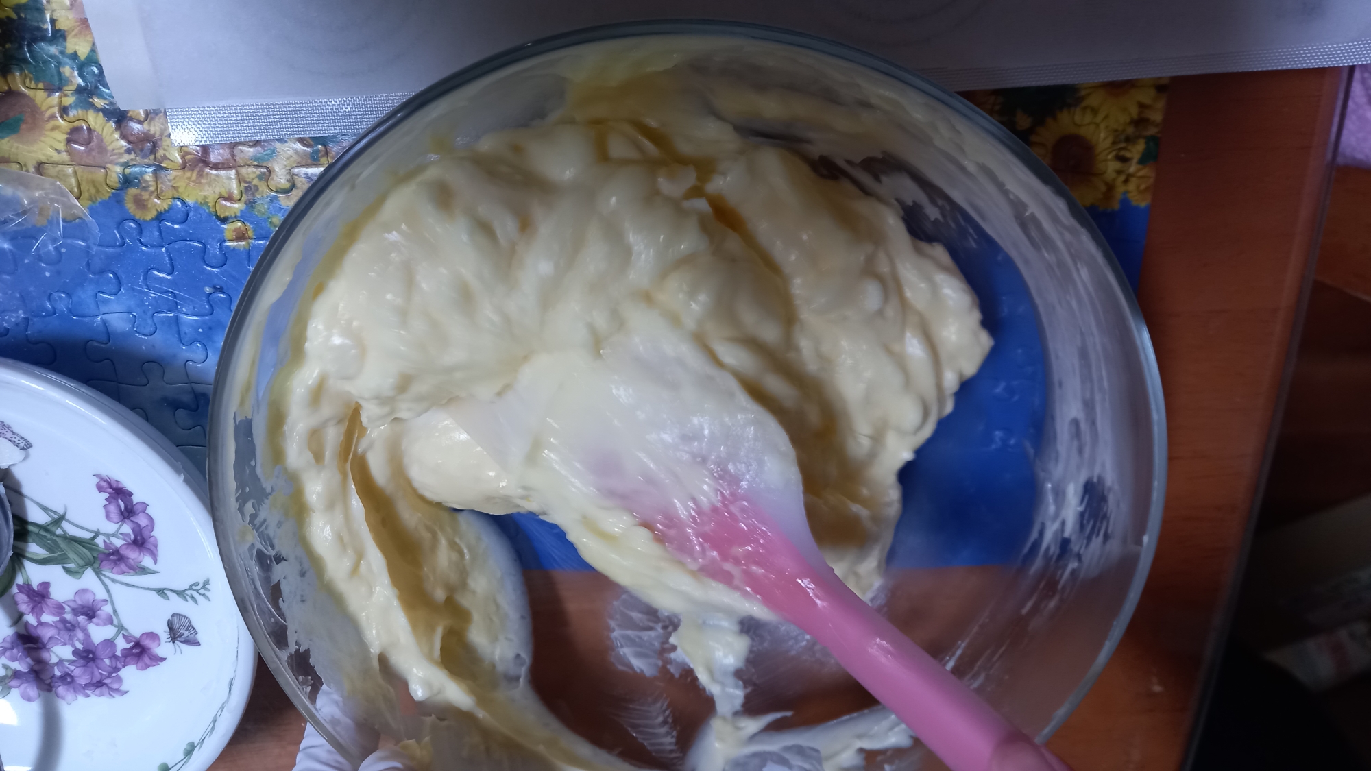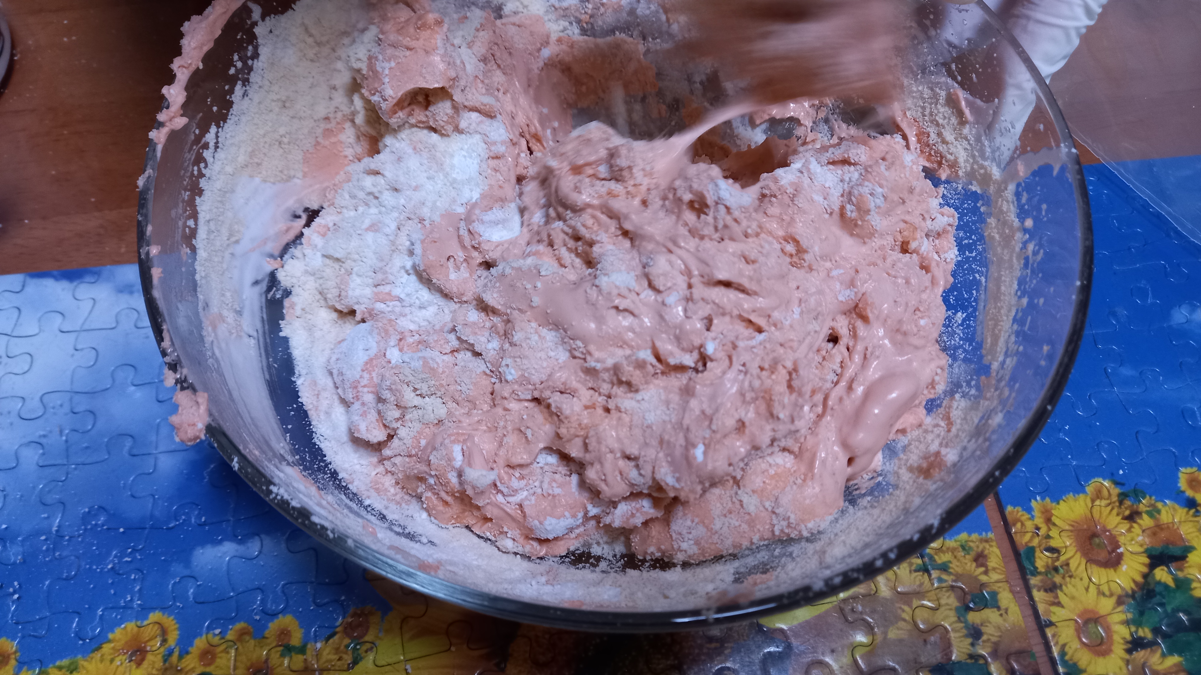 잘 저어준 후 짤주머니에 넣어 냉장고에 넣어 굳혀요.