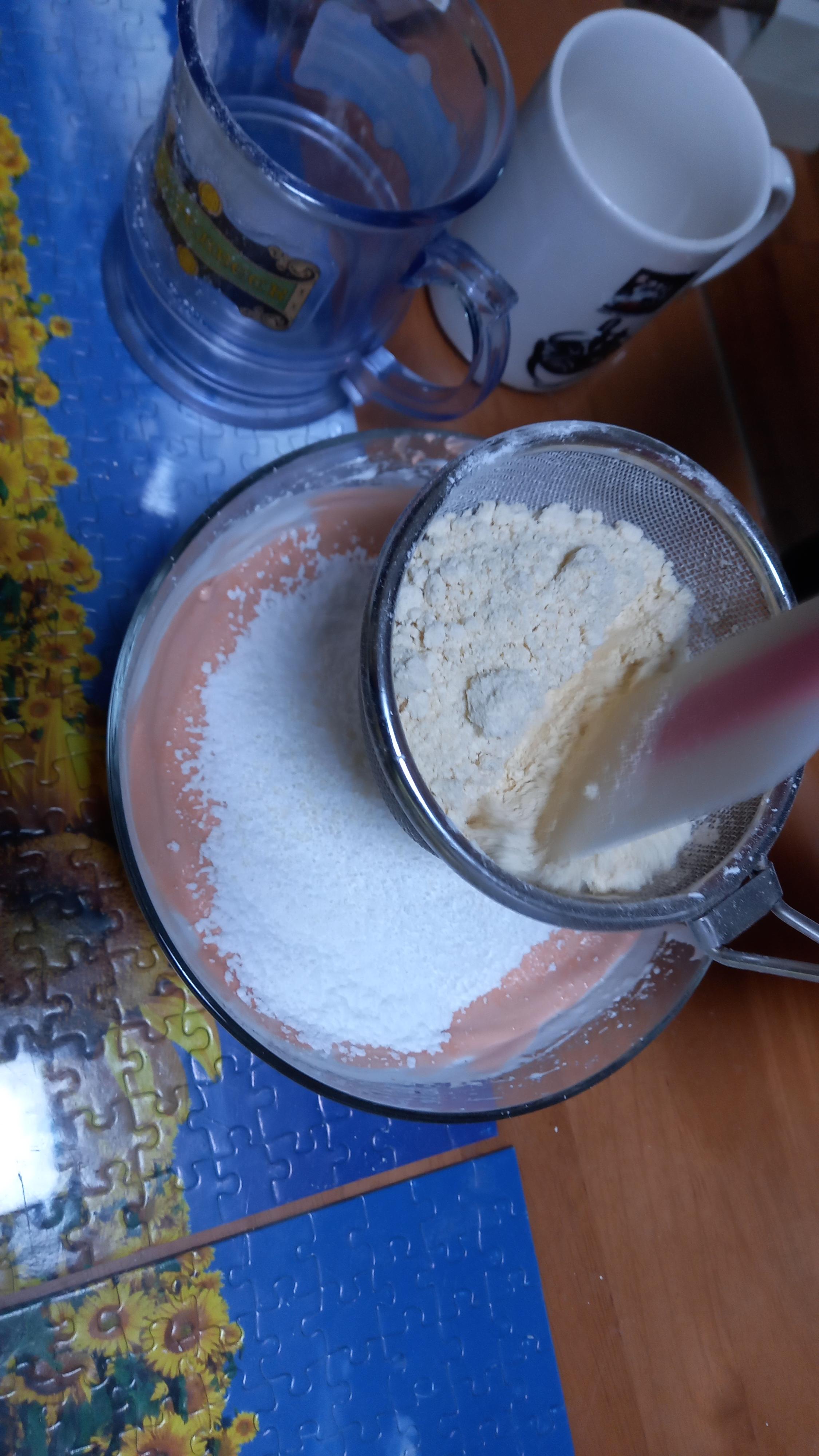 이제 슈가파우더를 채에 걸러 넣고 아몬드가루도 채에 걸려 넣어요.