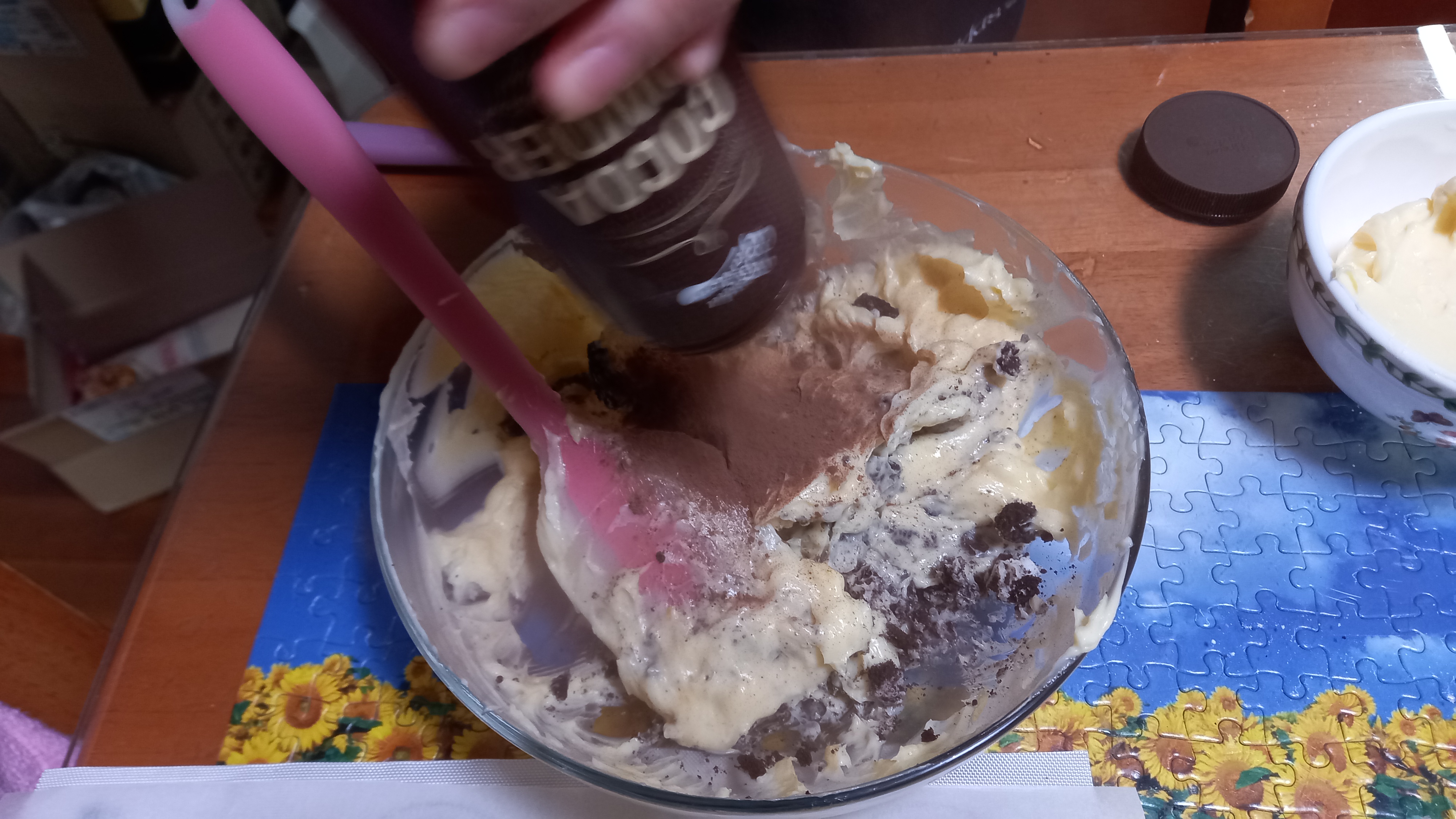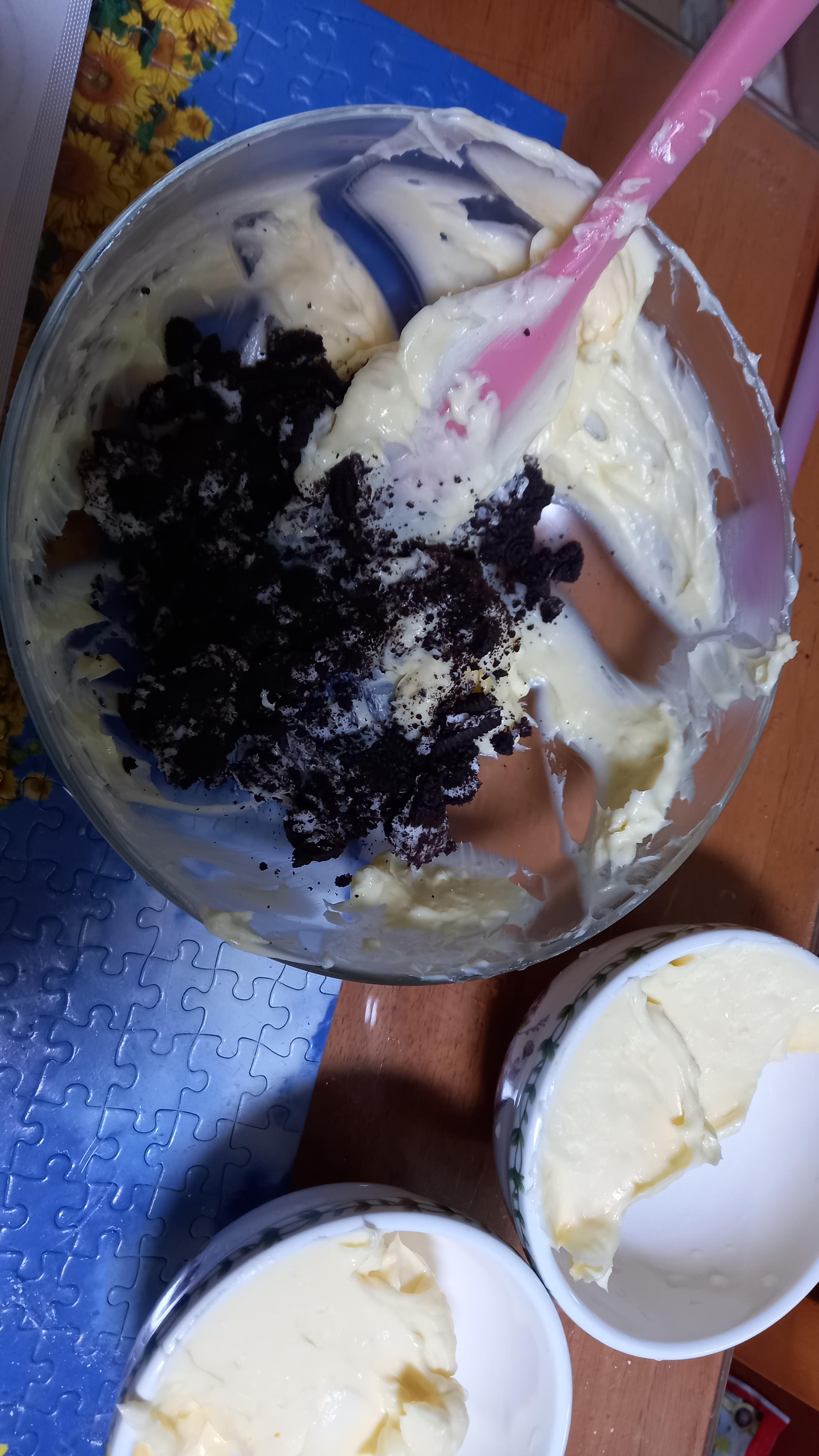 하나는 딸기 파우더를 넣고 하나는 오레오 과자를 부셔 넣고 초코파우더를 뿌려서 색을 냈어요.