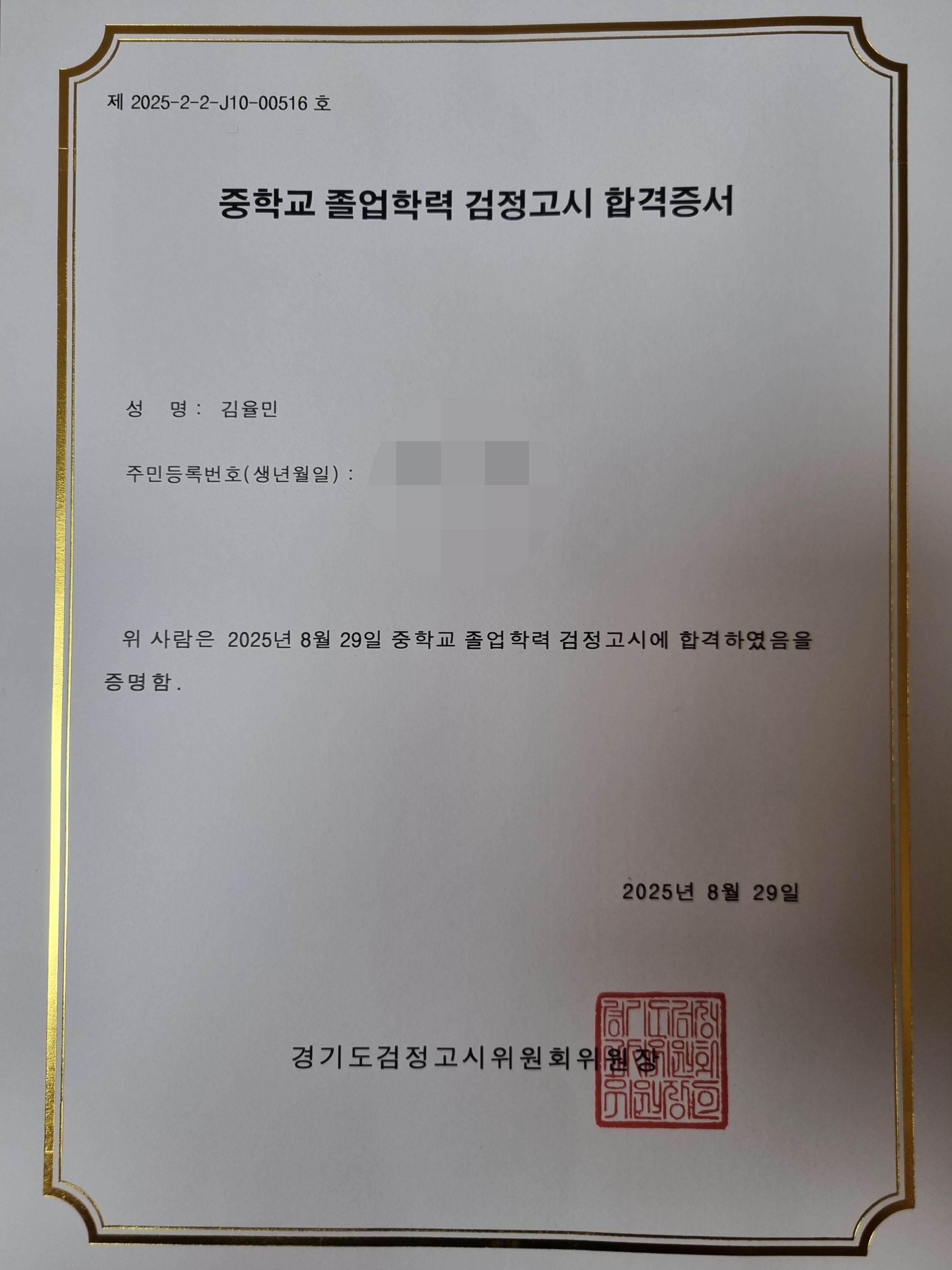 - 2025.09.01 25년 중등 검정고시 합격했어요 2