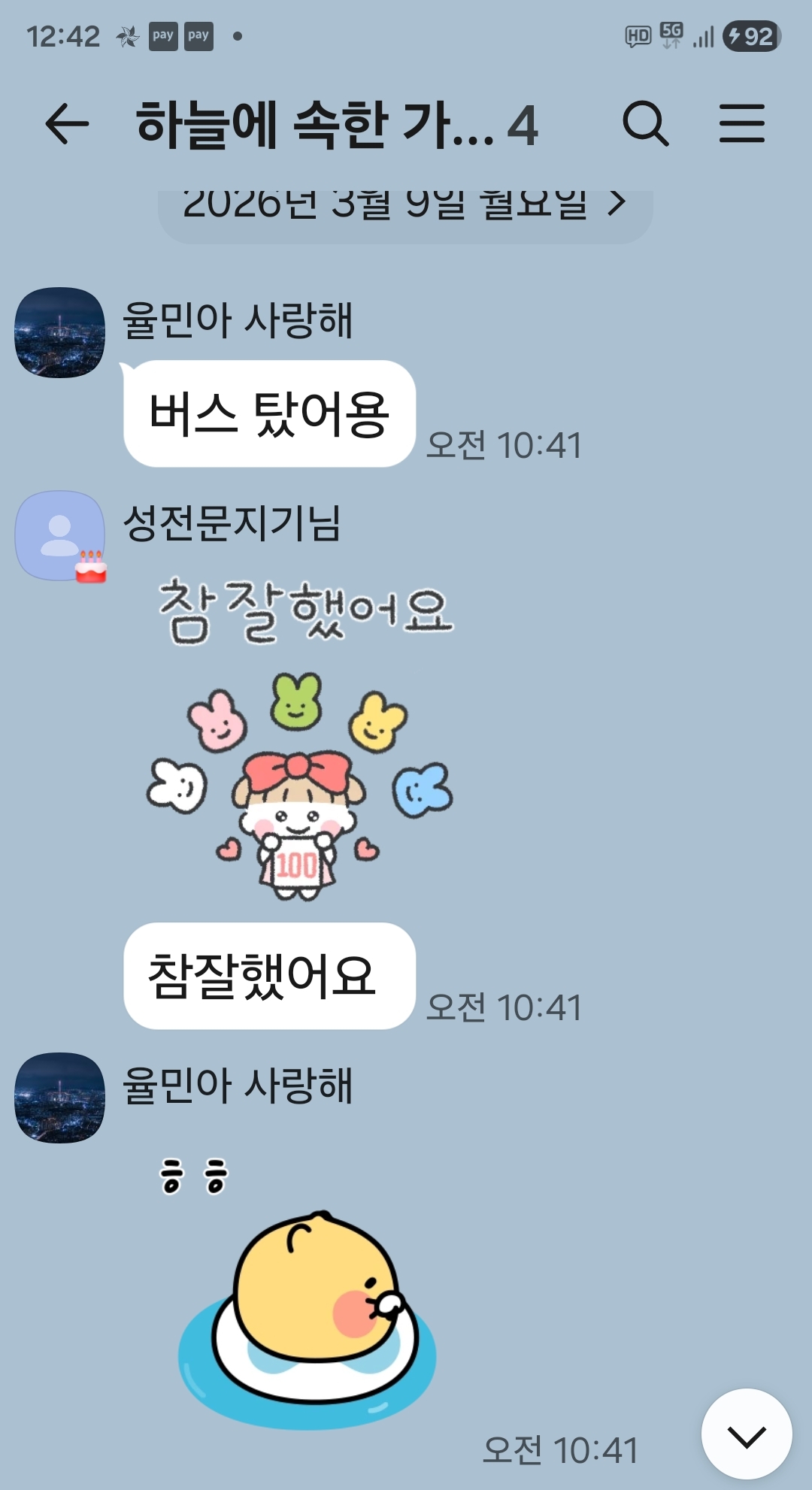 40분 후 카톡이 왔네요.